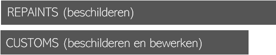 U overweegt om iets door mij te laten vereeuwigen. Wellicht een repaint of toch een custom? Hoe dan ook ben ik u dankbaar; dankbaar voor het vertrouwen dat u voor mijn werk kiest. Mijn doel is om voor u iets prachtigs te maken en u iets terug te geven wat u voor altijd liefhebt. Hieronder vindt u informatie die u van mij kunt verwachten en waar u zelf aan bij kunt dragen voor het beste eindresultaat. Zodra u contact met mij legt, inventariseer ik wat uw persoonlijke wensen zijn. Op basis hiervan zal ik een prijsopgave op maat maken. Alles kan, kijk snel verder!